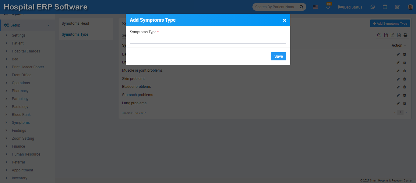 To add Symptoms Type click on + Add Symptoms Type button now enter Symptoms Type and click on Save button.