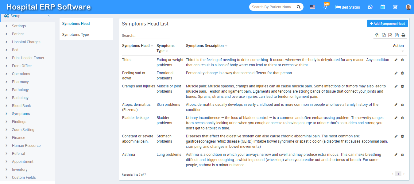 You can check added Symptoms Head record at Symptoms Head List page.