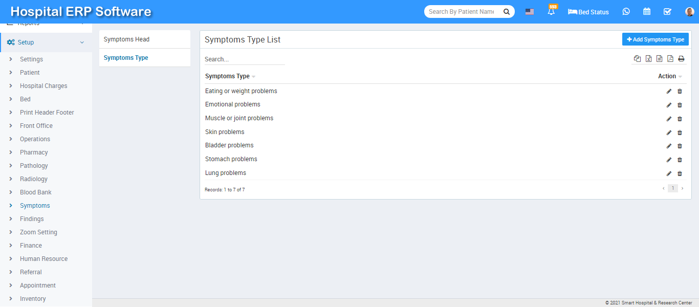 To edit Symptoms Type click on edit and to delete Symptoms Type click on delete icon present at Action column.