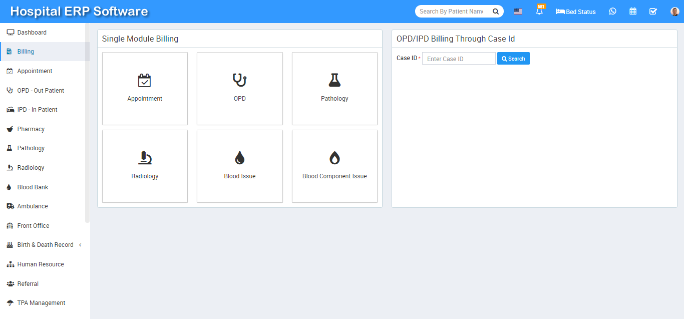 OPD/IPD Billing Through Case Id feature is very useful, here staff only need a