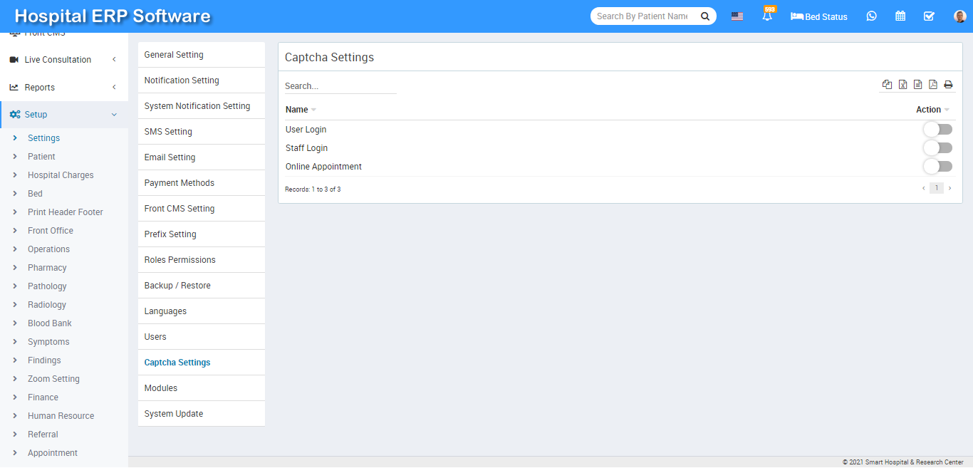 Here in the Hospital ERP Software we are providing captcha code verification for 3 events User login, Staff login, Online Appointment.