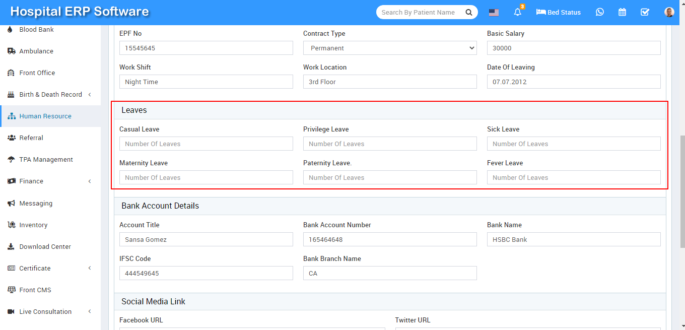 Note - Before apply for leave make sure you have assigned leave to staff from Human Resource > Edit Staff at Leave section otherwsie on Leave Type drop down no record will be shown.